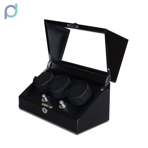 शानदार 3-स्लॉट स्वचालित घड़ी के लिए चमड़े के अस्तर के सुरक्षित भंडारण के साथ, ऐक्रेलिक घड़ियों के लिए चमड़े के अस्तर सुरक्षित भंडारण के साथ