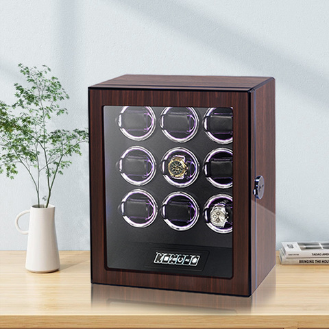 12 क्लॉक रोटर्स लक्जरी पियानो फिनिश सुरक्षात्मक लकड़ी के साथ सूट और चमड़े के साथ 9 घड़ियों के लिए स्वचालित