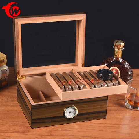 صندوق مرطب مخصص للمعيشة المصنوعة يدويًا مع شعار مخصص لحامل السيجار